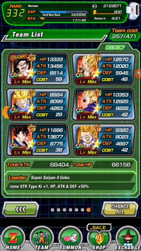 Good stuff. I changed up my team for this event by adding a couple more ssj3s to make it easier such as ssj3 vegeta GT and ssj3 goku. To be honest I didn't really need them but it's nice to give the ssj3s a use again. Plus ssj3 goku is actually really underrated. Also can't wait for ssj3 vegeta GT dokkan awakened for global.