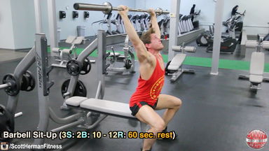 Barbell Sit-Up 3 2 10 to 12 60 sec.