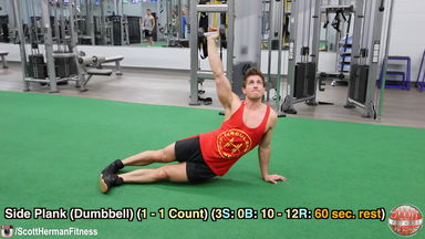 Side Plank (Dumbbell) 3 0 10 to 12 60 sec.