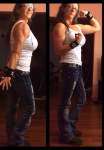 I am 49 year old mother of three daughters and a grandmother of one. I have been married for 29 years. I let myself get obese and out of shape in my early 40's. I had never been overweight before then. I decided to change that in 2010. I have lost 80+lbs and started lifting weights in 2012 after I had lost approx 75-80% of that. I started lifting heavy weights and getting serious about it in January 2013. I started building up my own home gym and I now have a 300 sq ft home gym. I have never been to a public gym or had any outside training. I learned from videos and articles from people like Scott Herman. I love lifting weights, sprinting up hills, & punching a heavy bag. I also love to dance :) I'm not positive on the bf%. My husband uses calipers to check it and I don't know how accurate it is but I can at least tell if it changes.